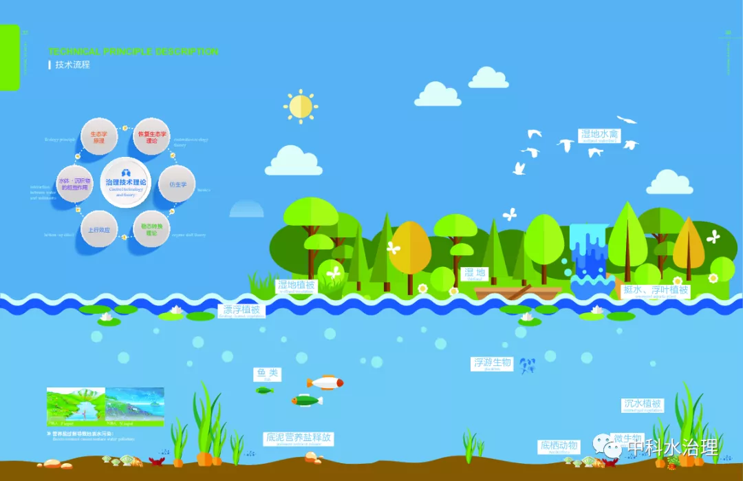 纯生态:遵循地球生态圈的演变规律,人工干预为辅助,强化目标水体的生态自我修复,弱化理化技术手段,充分考虑物种的竞争关系,保障区域的生态安全。