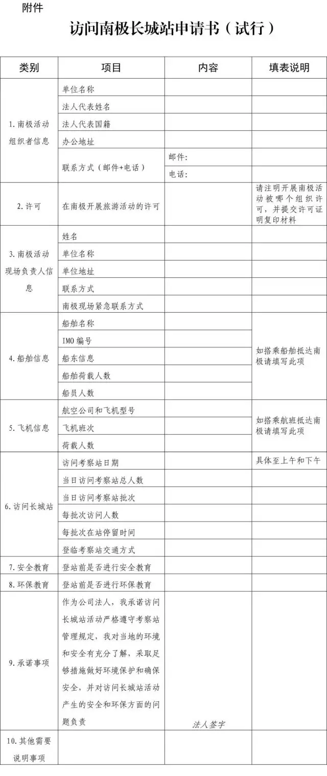 按照指南,拟申请赴长城站开展旅游的企业,可以在每年9月15日至9月30日期间的工作日,向自然资源部政务大厅现场递交中文版书面材料。