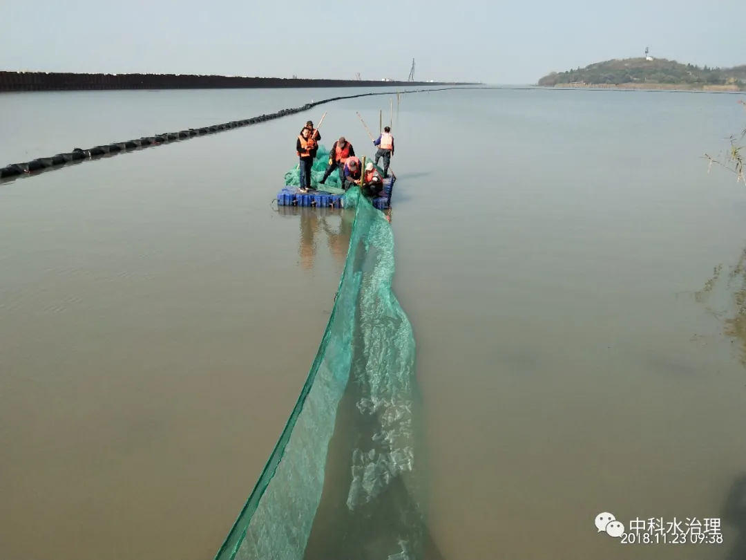 2018年7月,南京中科水治理股份有限公司再次中标太湖水域人工种植水生植物试验项目。为更好地推动“梅梁湖项目”,贯彻和落实上级领导对本项目的指示,中科水治理以太湖沿岸线为基础,以围隔为隔水材料,将太湖水域隔离出封闭水域6万㎡,并以仿生消浪、渔簖、生态网膜工程为辅助措施,进行太湖水域人工种植水生植物的试验项目。