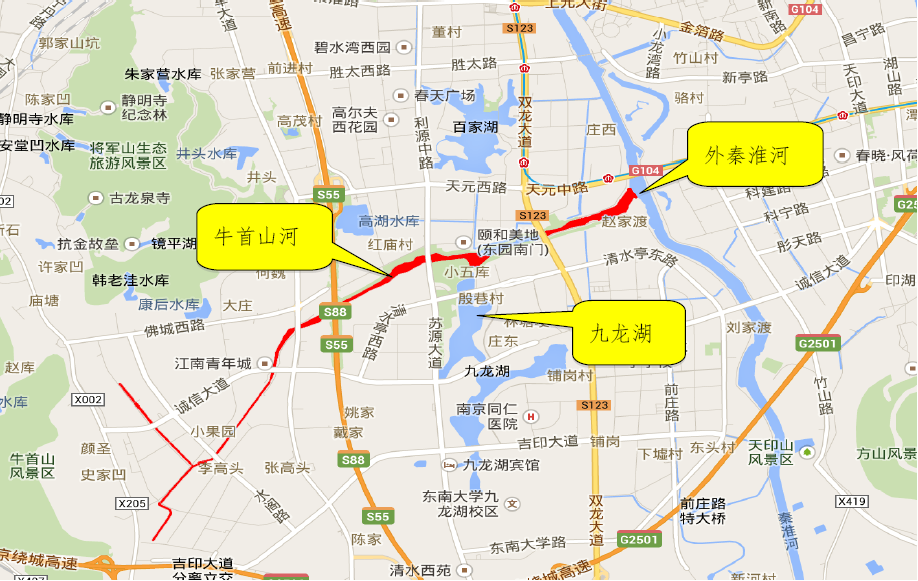 治理措施要与河道自然景观协调一致,将牛首山河建成环境优美的景观河道。