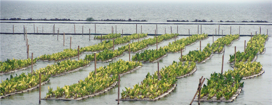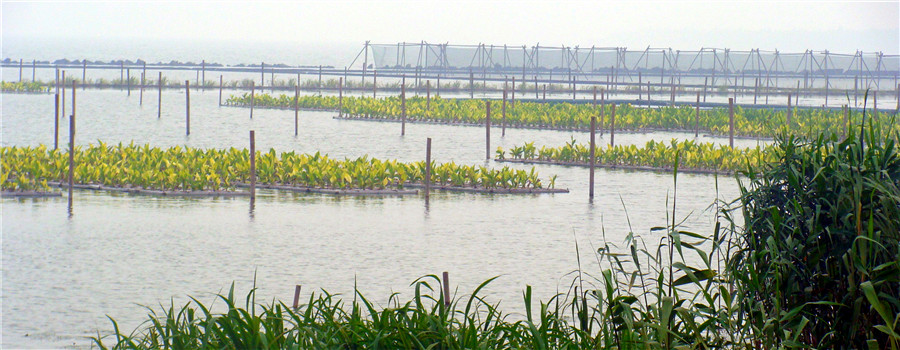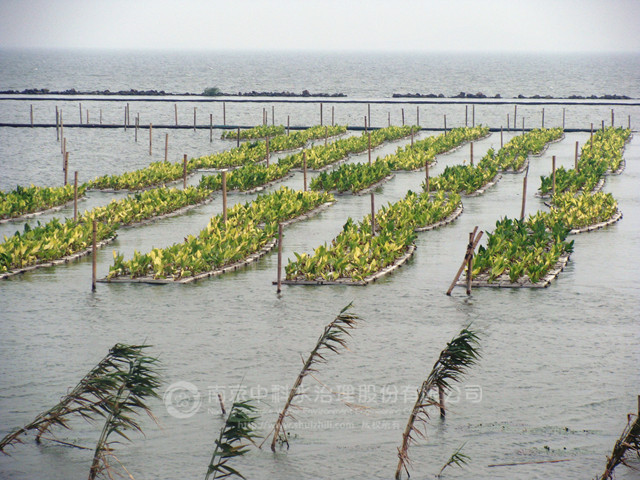 植物净化浮岛与岸带芦苇湿地系统