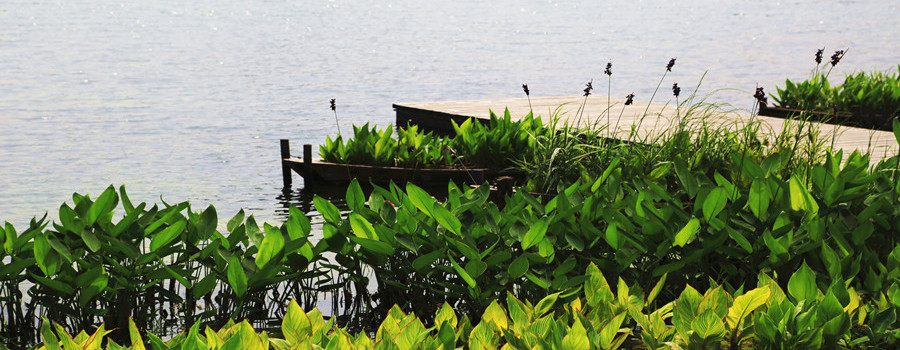 武汉园博园景观湖清水型生态系统构建工程水域面积约58000m2,平均水深1.7m,引水水质为劣V类,雨水面源径流中含有绿化施肥且量大。园博园景观湖清水型生态系统构建的成功,不仅形成了景观优美、植被茂密的生态环境,更具有保护水源、净化水质、调节径流、提供多种动物栖息地等功能。