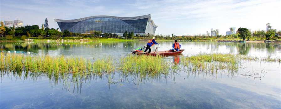 锦城湖3#、4#湖清水型生态系统构建工程位于成都高新区内,是成都高新区投资建设开发有限公司打造的198项目,3#、4#湖水面总面积为21.23万 m2。3#湖最大水深5.5m,4#湖最大水深3.2m。